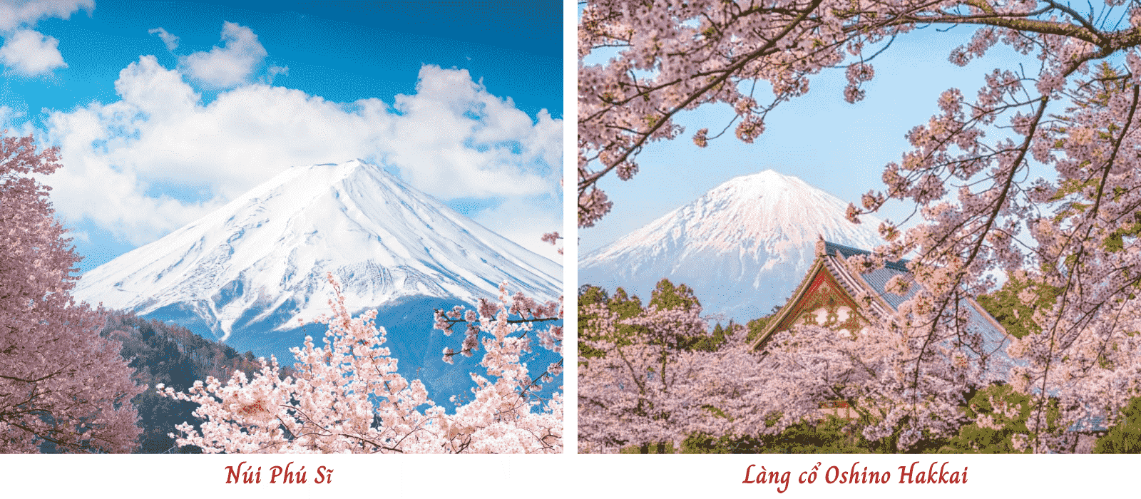 - Làng cổ Oshino Hakkai: ngôi làng nằm ngay dưới chân núi Phú Sĩ, cho đến ngày nay những ngôi làng vẫn giữ nguyên nét kiến trúc truyền thống Nhật Bản xưa